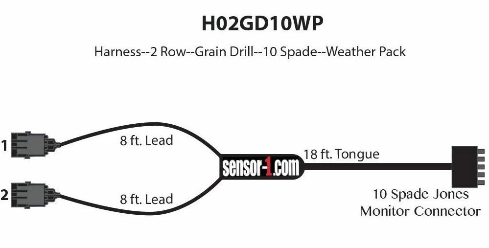 - 2 Row Grain Drill Harness with a 10 Spade Connector and Weather Pack Ends, This harness is made for a 1 box/section drill.