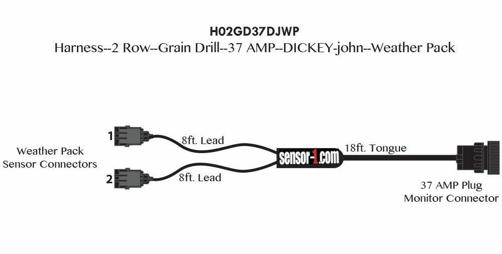 - 2 Row Grain Drill Harness with 37 Pin AMP Connector pinned out for Dickey John and Weather Pack Ends
