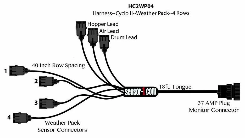 - 4 Row Planter Harness with 37 Pin Cyclo II Monitor Connector and Weather Pack Ends-40-Inch Row Spacing.