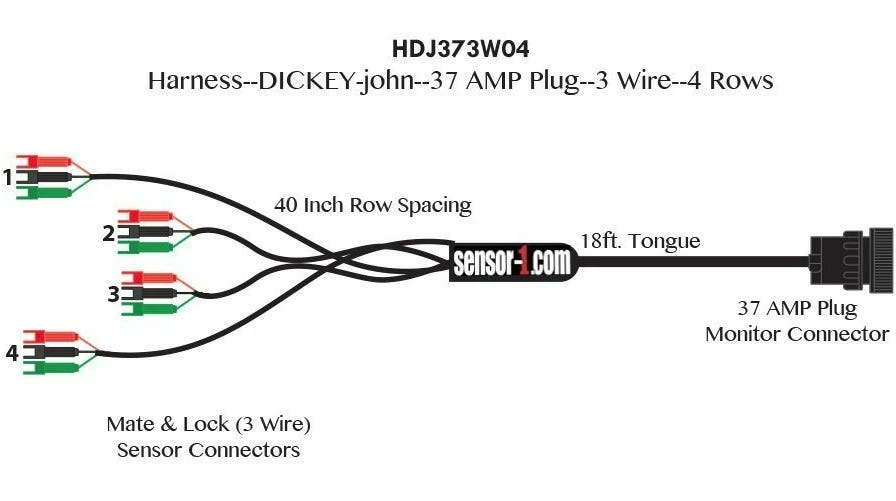 - 4 Row Planter Harness with 37 Pin Amp Monitor Plug and Mate-N-Lock Amp Connectors, Made with Standard Tongue Length of 18 Ft.
