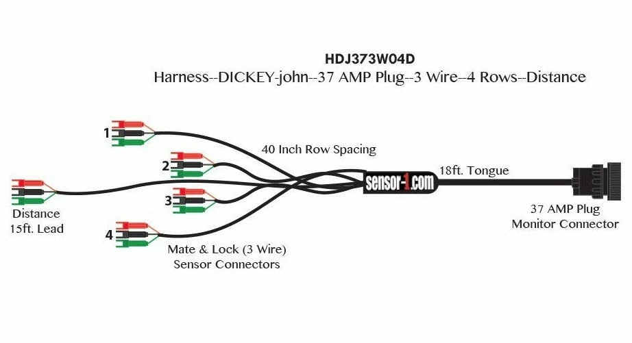 - 4 Row Planter Harness with 37 Pin Amp Monitor Plug, Distance Sensor and Mate-N-Lock Amp Connectors, Made with Standard Tongue Length of 18 Ft.