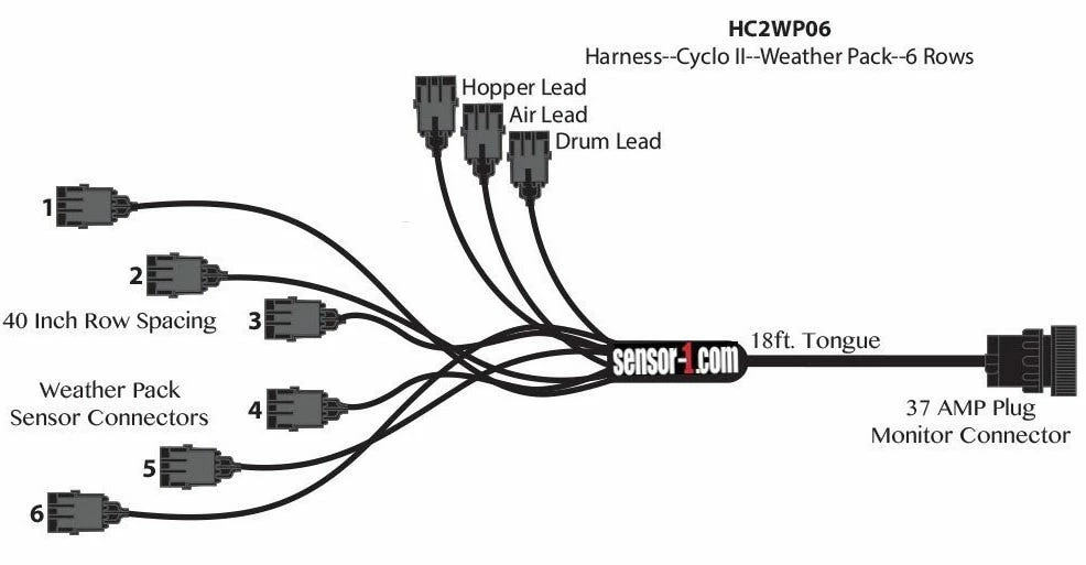 - 6 Row Planter Harness with 37 Pin Cyclo II Monitor Connector and Weather Pack Ends-40-Inch Row Spacing.