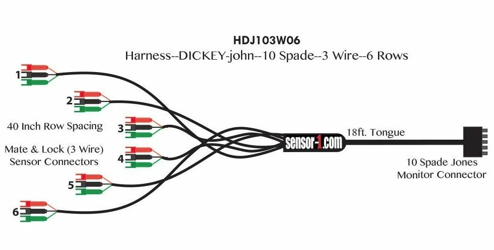 - 6 Row Planter Harness with 10 Spade Monitor Plug and Mate-N-Lock Connectors, Made with Standard Tongue Length of 18 Ft.